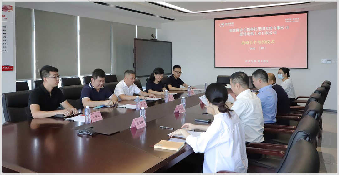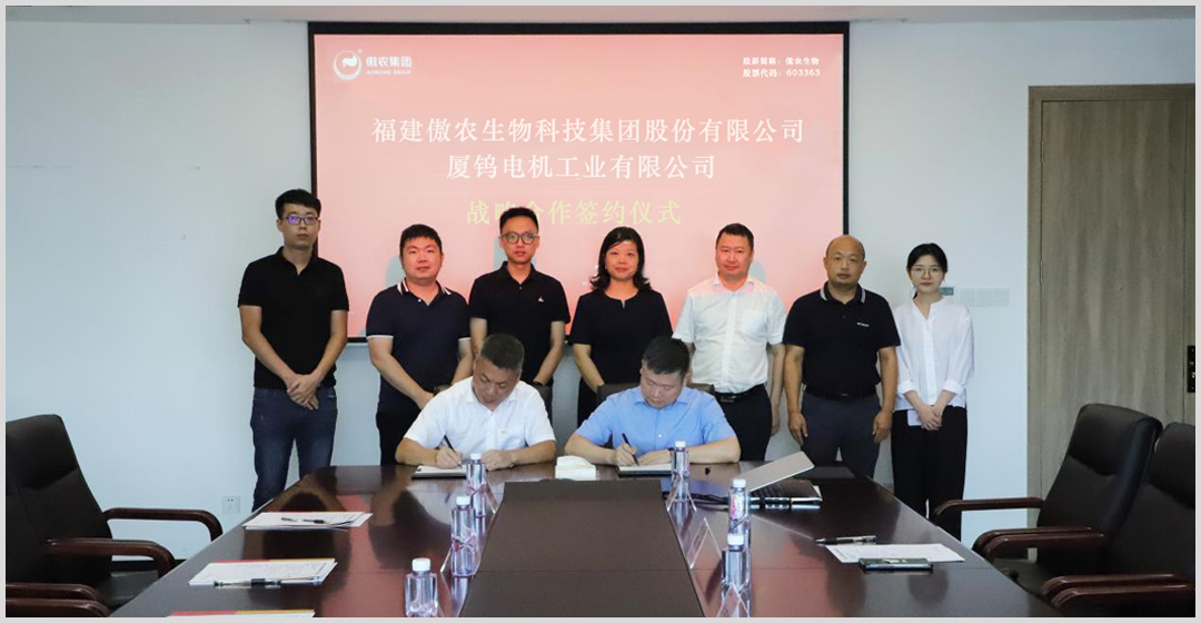 為了積極響應國家“十四五”規劃和2021年中央一號文件提出的“加快推進農業現代化建設、依靠科技創新和技術進步推動傳統農業養殖業向規模化、工業化、智能化方向發展”的號召,2022年8月24日,廈鎢電機工業有限公司(簡稱“廈鎢電機”)與福建傲農生物科技集團股份有限公司(簡稱“傲農集團”)在傲農廈門觀音山運營中心舉行戰略合作簽約儀式。廈鎢集團常務副總裁兼廈門勢拓智動董事長鐘可祥先生和傲農集團董事長、總裁吳有林先生代表雙方權屬公司簽署了戰略合作協議。簽約儀式由傲農集團董事、養豬產業經營總部總裁葉俊標先生主持,廈門勢拓智動科技有限公司總經理李宓貞女士和傲網信息科技總經理郭靖先生等人出席了簽約儀式。
