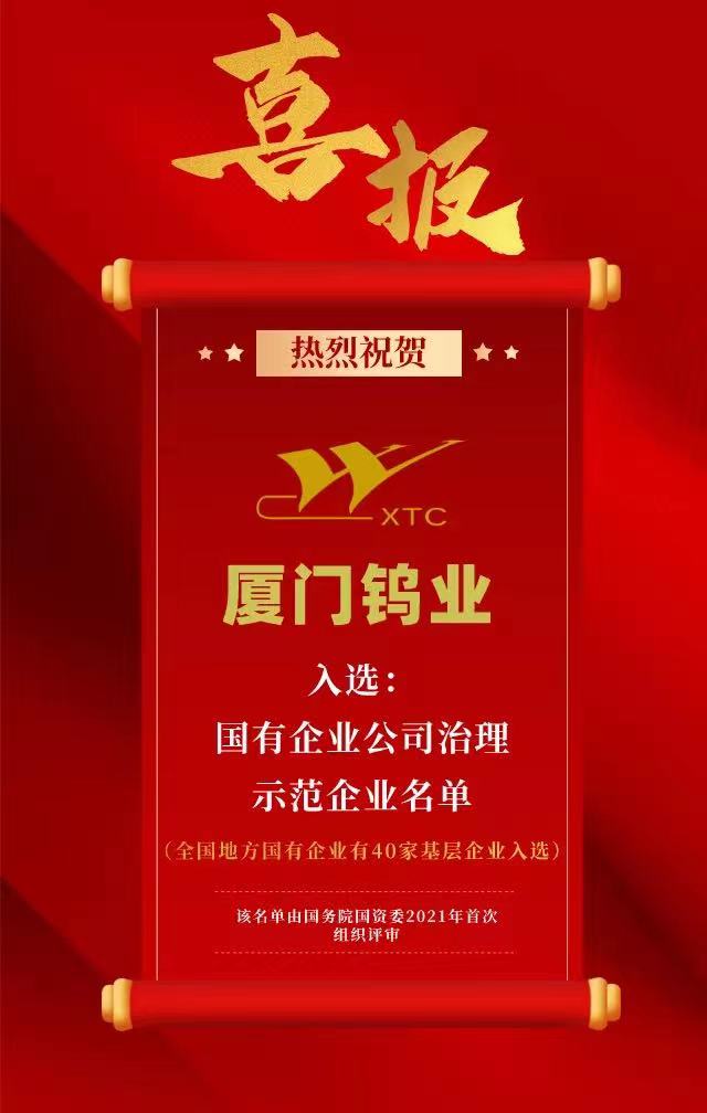 廈鎢集團入選國有企業公司治理示范企業名單